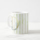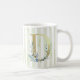 D golden initial on blue and white stripes coffee mug