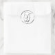 D Monogram Faux Silver Envelope Or Favour Seal. These classic round stickers are printed with non metallic ink on a flat sticker to look like silver. They are not beveled or embossed monograms but are designed to look like they are beveled or embossed monograms. These silver monogram seals are printed on a white background unless you select a different colour background before you proceed to checkout. In addition to being pretty wedding stationery supplies, these elegant wedding invitation envelope seals also make great monogrammed custom Christmas card seals, personalized holiday greeting card envelope seal stickers and customized Xmas card monogram seal stickers.