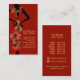 Fashion business card for women's fashions featuring a deep red cloth textured (digital) background, black silhouette woman with dress made of flowers. An awesome professional business card for clothing, sewing, craft, or retail business...but, you choose what industry or personal use that best suits your needs. Fully customizable, just replace the provided text with your desired information. Social icons on back of business card are removable so if you don't have one of the social network accounts you can remove that icon and text associated with it or you can remove all social information if you desire.