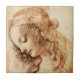 Da Vinci Woman’s Head tile. Ink sketch on paper from 1473. One of Leonardo da Vinci’s most admired stetches, Head of a Woman features a beautiful young lady lowering her face to the viewer with her eyes half open in contemplation, her long flowing hair hangs down over her face and shoulders. She wears a pretty diadem and small bows in her hair. A beautiful gift for fans of Leonardo da Vinci sketches, High Renaissance art, and famous portraits.
