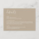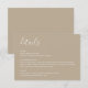 Cette carte de détails de mariage beige boho moderne présente un design minimaliste avec une couleur beige boho terne et une typographie moderne et propre. La suite de mariage de coordination est disponible.
