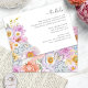Boho Détails Mariage Carte de boîtier. Partagez des informations de mariage importantes en style avec cette carte de détails horizontaux audacieuse et magnifique, parfaite pour les fêtes de printemps, d'été ou d'automne capricieux. Un bouquet de fleurs d'aquarelle vibrantes - dont des pivoines rousses et fuchsia, des accents jaunes et oranges dorées, des roses violets lavande, du delphinium bleu, des marguerites joyeuses, des fleurs sauvages et un papillon délicat - apporte une couleur joyeuse à vos détails. L'arrière présente un motif floral coordonné, créant un aspect cohésif et poli. Élevez votre suite d’invitation avec un design aussi pratique que surprenant : donnez vie à vos détails avec une touche personnelle.
