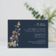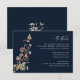 Carte Boho Fleur sauvage bleu marine. Élevez votre papeterie mariage avec cette carte de détails de Fleur sauvage Navy Blue Boho, où la beauté de la nature rencontre le raffinement sans effort. Un papillon peint à la main repose délicatement parmi les fleurs sauvages d'aquarelle en terre cuite chaude, rouille, violet et bleu, dressé contre un riche arrière - plan bleu marine pour un contraste saisissant. Les accents botaniques et les détails d'inspiration vintage créent une atmosphère romantique et organique, parfaite pour toute saison. Entièrement personnalisable pour s'adapter à votre célébration unique : modifiez le libellé, expérimentez les styles et les tailles de police, ou changez l'arrière - plan pour compléter votre thème mariage. Une façon très artistique de partager des détails importants avec vos invités - commencez à créer un design aussi unique que votre histoire d'amour aujourd'hui!