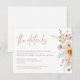Ajoutez une touche d'élégance à votre mariage avec notre Boho Floral Mariage Details Card. Cette carte est le compagnon parfait de votre faire-part de mariage, fournissant aux clients toutes les informations essentielles dans un format magnifiquement conçu. Avec un mélange exquis d'illustrations florales d'inspiration boho, cette carte de détails saisit l'essence du romantisme et de la beauté naturelle. Objets correspondants dans notre magasin Cava Party Design.
