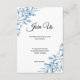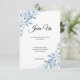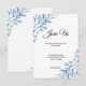 Cette carte de réception à fleurs bleues classique est parfaite pour un mariage de printemps ou d'été. Avec des fleurs de cerisiers dessinées à la main, des bourgeons et des brindilles dans un bleu foncé contre un arrière - plan blanc. Élégant script de calligraphie est équilibré par une typographie propre et moderne tout au long du reste de la conception.