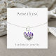 Montrez votre collier en pierres gemmes améthyste avec cette carte de bijoux. Les colliers en pierre de naissance sont uniques, des cadeaux amusants à offrir comme cadeau d'anniversaire. Les pierres précieuses sont aussi des cadeaux bien adaptés à d'autres occasions comme les diplômes, les journées de la mère et les événements mariages. Vous pouvez mettre à jour le texte pour fournir votre site Web et d'autres détails.