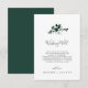 Ce mariage vert émeraude qui souhaite une bonne carte est parfait pour un mariage boho. Le design élégant et rustique présente des feuilles d'aquarelle vert foncé moody et des eucalyptus aux tons bohèmes modernes. Personnalisez cette carte d'invitation avec vos noms, et un court poème de bienvenue.