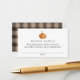 Une carte d'insertion de billet de tombola pour baby shower. Citrouille orange et motif plaid marron.