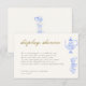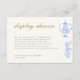 Carte d'enceinte de douche à l'écran pour un thé à la nuptiale (sans emballage), avec un set de thé chinois sucré en bleu périwinkle et en dentelle blanche (c'est un effet numérique), avec une calligraphie élégante à l'ombre d'or (c'est aussi un effet numérique).