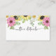 Apportez un charme rustique à votre fête avec cette carte de détails mariage de tournesol avec marguerites d'aquarelle, fleurs roses et calligraphie élégante. Idéal pour fournir aux clients des informations essentielles comme le lieu et l'hébergement. Un beau match pour les mariages d'automne, d'été ou de boho. Customisez facilement pour s'adapter à votre grand jour.