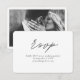 Carte d'enceinte RSVP minimaliste de mariage script personnalisée avec vos informations et votre photo. Entrez l'outil de conception Zazzle pour une personnalisation plus poussée, comme le placement de texte ou pour enlever la photo au dos. Assurez-vous de comparer les différents types de papier pour sélectionner votre texture préférée.