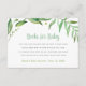 Cartes de demande de livre imprimé personnalisées pour coordonner avec notre baby shower d'invitation feuille de boho aquarelle. Utilisez les outils de conception pour customiser le libellé et modifier les polices et les couleurs pour créer votre propre carte d'insertion de demande de carnet de baby showers unique.