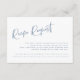 Cette carte de demande de recette de douche nuptiale bleu denim est parfaite pour une douche nuptiale terre, bleue et blanche. Le design est caractérisé par une typographie élégante mais rustique. Magasinez la collection ici : https://www.zazzle.com/collections/denim_dusty_blue-119593237416211179?rf=238296117664346256
