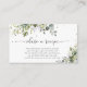 Carte de demande de recette florale d'eucalyptus vert. Cette carte de demande de recette élégante et stylée pour la douche de la mariée présente de magnifiques fleurs d'eucalyptus vert peintes à l'aquarelle. Trouvez des articles assortis dans la collection de douche de mariage florale d'eucalyptus vert.