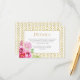 Parties scintillant dorée effet motif feuille, avec un très joli arrangement floral rose. Belle papeterie estivale pour douches nuptiales, mariages ou anniversaires. Les invitations et les cartes sont disponibles dans une sélection d'options de forme (arêtes arrondies, échalotes, etc.) et dans un choix de textures de papier. Les styles de police, les couleurs et la taille sont personnalisables. Vous pouvez trouver d'autres conceptions avec de nombreux produits de coordination dans notre magasin, y compris des invitations, enregistrer la date et les cartes rsvp, étiquettes de remerciement, et plus encore.
