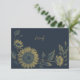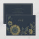 Partagez des informations mariages essentielles avec style grâce à cette carte de détails de tournesol élégante. Conçue pour s'harmoniser avec la suite marine et mariage or, cette carte est dotée du même motif de tournesol gravé et d'une typographie sophistiquée, parfaite pour transporter des logements, le transport, le code vestimentaire ou les liens vers le site Web. Les touches raffinées d'arrière - plan de marine et d'or apportent une touche intemporelle et rustique-chic à votre papeterie mariage.