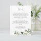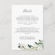 Cette carte de détails de mariage avec branche d'olivier moderne est parfaite pour un mariage bohème. Le design rustique et élégant présente des feuilles vertes botaniques aquarellées simples et des olives noires sur une petite branche avec une ambiance méditerranéenne classique.