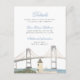 Carte d'invitation de mariage côtier classique avec une illustration aquarelle peinte à la main du pont de Newport, Rhode Island. Personnalisez cette invitation en ajoutant les informations sur votre mariage, y compris le lieu de réception, l'hébergement et le site web.