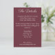 Cette carte de détails obligatoire présente le titre dans un script animé et vos détails dans une police serif moderne. C'est l'endroit idéal pour noter des chambres et d'autres informations mariages pertinentes. Le verso affiche votre date de mariage.