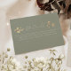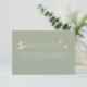 Fournissez aux clients des informations importantes à l'aide de cette élégante carte de détails de mariage vert sage. Décoré de doux tons beiges et dorés et de calligraphie raffinée, il est parfait pour partager votre site Web, votre itinéraire, votre hébergement et plus encore.