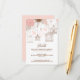 Carte d'enceinte personnalisable avec des oiseaux, des fleurs et des feuillages roses. Il s'agit d'une partie d'une suite mariage (WHIMSICAL BIRDCAGES I). Des éléments correspondants et d'autres couleurs sont disponibles.
