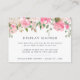 Faites glisser ces petites cartes dans votre baby shower ou vos invitations à la douche nuptiale lorsque vous demandez que les invités apportent leurs cadeaux non emballés. Le design floral pastel à l'aquarelle rose pâle et vert eucalyptus s'accorde avec notre collection d'invitation florale du milieu de l'été. Un poème sucré explique le concept et la demande de "douche d'affichage", et peut être modifié pour répondre à vos besoins. Personnalisez avec le nom de l'invité d'honneur et la date de la douche en bas.