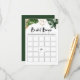 Ajoutez cette carte de jeu de bingo sur le thème tropical pour la douche de mariée. Elle présente des feuilles tropicales avec des accents tropicaux en faux or. Personnalisez en ajoutant un nom et une occasion au verso de la carte. Cette carte de bingo de mariage verdoyante est parfaite pour les douches de mariée estivales et tropicales.
