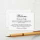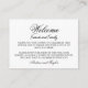 Cette élégante carte de présentation pour panier cadeau de bienvenue en noir et blanc avec une calligraphie très élégante peut être facilement personnalisée pour votre événement très spécial ! C'est une façon agréable de remercier vos invités venus de loin pour le voyage qu'ils ont dû faire pour célébrer avec vous votre grand jour. Avec cette carte personnalisée, vous êtes à un pas de transformer votre célébration en un événement remarquable.