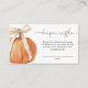 Carte de rabat citrouille Bow - Une carte de tombole charmant et personnalisable avec un citrouille orange à l'arc blanc délicat. Parfait pour un baby shower sur le thème de la chute ou du citrouille, cette carte ajoute une touche unique et festive à votre célébration tout en encourageant les invités à participer à la tombola de couche. *** Veuillez saisir H162 dans la recherche de magasin pour trouver tous les articles correspondants *** Ou visitez notre Collection de Baby showers de Bow Citrouille. *** Ce design de haute qualité est facile à customiser pour correspondre à vos couleurs, styles et thèmes de douche. Pour plus de personnalisation, cliquez sur le lien "Modifier en utilisant l'outil de conception" et utilisez notre outil de conception pour modifier ce modèle. Si vous avez besoin d'aide ou d'articles correspondants, veuillez me contacter.