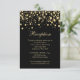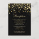Carte plate de réception de mariage avec confettis dorés sur fond noir