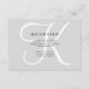 Ces cartes d'information de réception de mariage élégantes affichent votre monogramme en grand texte moderne coloré en blanc sur un fond gris doux.