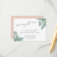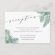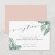 Utilisez ces cartes élégantes pour votre mariage d'été, de destination ou de plage. Design élégant et estival, avec des feuilles de fronde de palmier tropicale en aquarelle verte, avec vos détails de réception de mariage dans un élégant mélange de script de calligraphie, de serif et de typographie italique. Cartes inversées à rose vif pour un look tropical chic.