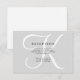 Ces cartes d'information de réception de mariage élégantes affichent votre monogramme en grand texte moderne coloré en blanc sur un fond gris doux.