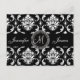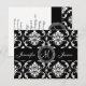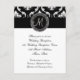 Cartes de réception élégantes et audacieuses avec monogramme et motif Damas noir et blanc que vous pouvez insérer dans votre pochette d'invitation de mariage. Personnalisez avec les détails de votre réception de mariage et vos informations personnelles. Elke Clarke © Pour une carte d'invitation de mariage de 5 x 7 pouces ou plus grande. Contactez luxuryweddinginvitations@gmail.com pour obtenir de l'aide sur d'autres combinaisons de couleurs.