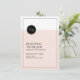 Conception de monogramme minimaliste chic moderne rose et noir, parfaite pour un mariage moderne ou un mariage printanier. La couleur de fond rose blush peut être modifiée pour correspondre à votre thème de mariage, cliquez simplement sur le bouton "Personnalisez-le !" puis modifiez la couleur dans la section "Couleur de fond imprimée". Personnalisez votre propre carte de réception pour votre invitation de mariage.