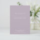 Cette carte de réception de mariage simple, minimaliste et moderne présente des lettrages modernes en blanc avec un fond lilas poussiéreux / violet. Vous pouvez trouver des produits assortis dans ma boutique.