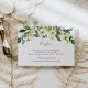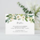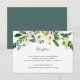 Conçue pour coordonner avec notre collection de mariages Alabaster, cette carte de réception botanique verte et blanche fraîche comprend un spray de verdure aquarelle et de fleurs blanches surplombant vos détails de réception de mariage, le lieu et le moment.