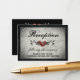 Carte d'accueil Halloween gris et noir assortie avec fleurs florales rouges Correspondances Skeletons Halloween Collection Mariage gris et noir Art & Design par Julie Alvarez