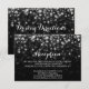 Cette carte de réception de mariage étincelante est sûre d'éblouir vos invités. Caractéristiques des orbes de lumière argentée brillante qui s'estompent sur un fond noir subtil. Parfait pour un mariage élégant et classe.