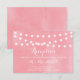 Carte de réception amusante et fantaisiste avec des guirlandes de lumières blanches sur fond aquarelle. Cela fait partie d'une suite de mariage. Des articles assortis sont disponibles.
