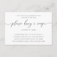 Cette carte de recette élégamment simple met en valeur une calligraphie noire gracieuse sur un fond blanc croquant, offrant une touche élégante et moderne pour toute douche de mariée. Avec son design minimaliste, c’est parfait pour rassembler les recettes préférées de manière sophistiquée. Idéal pour que les invités partagent leurs plats chéris avec la future mariée, cette carte combine joliment à la fois le style et le sentiment significatif pour un souvenir spécial.