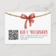 Simplifiez les cadeaux de fêtes avec cette carte de code QR de registre de cadeaux, une touche parfaite pour vos invitations de fêtes ou baby shower, bridal shower, anniversaire ou événement de fêtes. Le design classique apporte une sensation chaleureuse et joyeuse, aidant vos invités à accéder facilement à votre liste de cadeaux en ligne avec un simple scan.