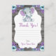 Guirlande florale personnalisable Très mignonne Aquarelle Purple et Fleurs Turquoises Carte de remerciements Eléphant rustique pour Anniversaire, Baby shower. Ajoutez votre texte, nom, etc !