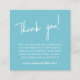 Il s'agit d'un carte de visite d'appréciation du client. Vous pouvez ajuster le message au besoin pour ajouter des informations sur votre produit, offrir une remise spéciale aux clients répétés, ou demander un avis sur votre site Web ou les médias sociaux. Le design fonctionne bien pour remercier les clients pour leur entreprise. Vous pouvez intégrer cette carte à des commandes achetées en ligne pour encourager vos clients à en apprendre davantage sur votre entreprise en naviguant sur votre site Web.