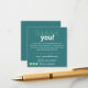 Il s'agit d'un carte de visite d'appréciation du client. Vous pouvez ajuster le message au besoin pour ajouter des informations sur votre produit, offrir une remise spéciale aux clients répétés, ou demander un avis sur votre site Web ou les médias sociaux. Le design fonctionne bien pour remercier les clients pour leur entreprise. Vous pouvez intégrer cette carte à des commandes achetées en ligne pour encourager vos clients à en apprendre davantage sur votre entreprise en naviguant sur votre site Web.