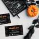 Customisez cette carte de marketing d'Halloween. Il est parfait pour une entreprise de commerce électronique comme une boutique, un magasin Etsy ou toute autre petite entreprise. Il contient l'expression "Merci pour votre entreprise" et dispose d'un texte personnalisable pour expliquer plus de détails. Ce produit express l'appréciation des clients et encourage les acheteurs à suivre votre entreprise sur les médias sociaux avec les informations fournies à côté des icônes de contact Facebook, Instagram et YouTube.