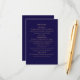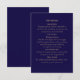 complétez votre suite de mariage Navy et or élégante avec cette carte d'enveloppe assortie. conçue pour compléter votre invitation principale, cette carte fournit tous les détails essentiels du mariage, y compris la réception, le transport, l'hébergement et les informations sur le site web. parfaite pour une célébration intemporelle et sophistiquée.