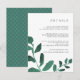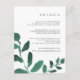 Conçue pour coordonner avec notre collection de mariages botaniques en Emerald, cette carte d'information élégante verte et blanche de la forêt présente des ressorts de vert éclatant aquarelle, encadrant vos principaux détails mariages, tels que les chambres d'hôtel, les informations de bienvenue à la réception, le site Web et plus encore. Ajoutez votre texte personnalisé à l'aide des champs fournis et utilisez la fonction Personnaliser pour ajuster les polices, les tailles et l'espacement.