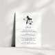 Conçue pour coordonner avec notre collection de mariages Grandiflora, cette carte d'information végétale et fleurie verte comprend une paire de fleurs de magnolia blanches gracieuses et des feuilles verts qui surplombent vos principaux détails mariages, comme les chambres d'hôtel, les informations de bienvenue à la réception, le site Web et plus encore. Ajoutez votre texte personnalisé à l'aide des champs fournis et utilisez la fonction Personnaliser pour ajuster les polices, les tailles et l'espacement.