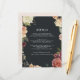 Conçue pour coordonner avec notre collection de mariage Moonlight Garden, cette élégante carte d'informations florales d'automne comporte une bordure de fleurs d'aquarelle rousse et bordeaux et de verdure encerclant vos principaux détails mariages, comme les chambres d'hôtel, les informations de bienvenue de la réception, le site Web et plus encore. Ajoutez votre texte personnalisé à l'aide des champs fournis et utilisez la fonction Personnaliser pour ajuster les polices, les tailles et l'espacement.
